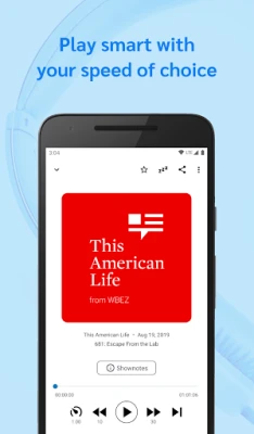 Download, stream or queue episodes and enjoy them the way you like with adjustable playback speeds, chapter support and a sleep timer.