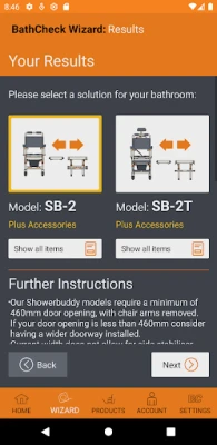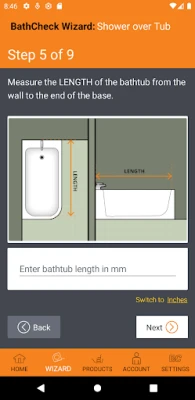 By inputting some dimensions of your own bathroom as prompted by the app you will get a result that explains how you can access your shower again, using equipment that will be configured correctly for your bathroom.