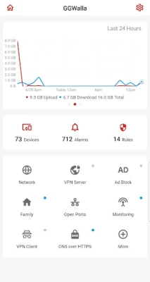 The Firewalla app is used to manage the hardware-based Firewalla devices. Key features and services include: