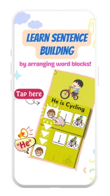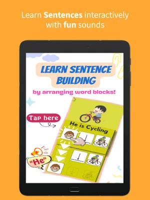 Interactive Gameplay: First Sentences Adventure offers an interactive learning experience where children assemble word blocks into complete sentences . Children will engage with colorful pictures, each with a tap to move feature essential to teach sentence-building skills.