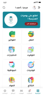 التواصل مع الإدارة: إرسال واستقبال الرسائل من إدارة المدرسة. جداول التوقيت: عرض جداول الحصص والأنشطة المدرسية. النقل المدرسي: متابعة مواعيد الحافلات المدرسية ومساراتها. نتائج الطلاب: عرض نتائج الامتحانات وتقارير الأداء. الفواتير المدرسية: متابعة الفواتير والدفع الإلكتروني للرسوم المدرسية. يقدم التطبيق تجربة مستخدم سهلة وبسيطة لمتابعة جميع الأمور المتعلقة بالحياة المدرسية.