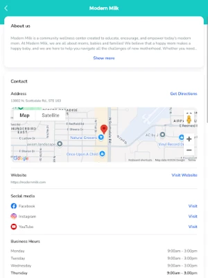 The Modern Milk app makes it easier than ever for new and expecting parents to access our full range of pre/postnatal fitness classes, educational workshops, lactation consultations, and our popular Happy Mom School. From fitness tailored to your stage of parenthood, to expert-led classes on pregnancy, newborn care, and beyond, the app provides seamless scheduling, booking, and membership management—all in one place. Whether you’re looking to stay fit during pregnancy, connect with other new moms, or get guidance on breastfeeding, Modern Milk supports you on your parenting journey.