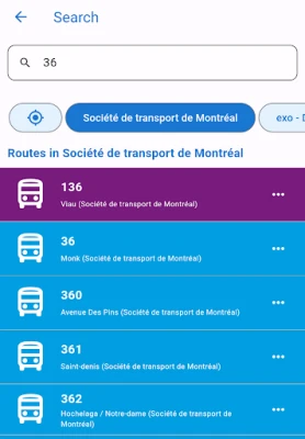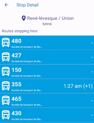 Public Transit Montréal includes all stops and schedules in Ontario Montréal including CIT, AMT, Trains and Société de transport de Montréal.