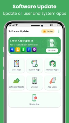 Software Update Phone Update App is designed to keep all your phone apps update. Uninstall unused apps with Storage cleaner will increase performance of all phone apps. Software updater will keep your phone update with latest technology.