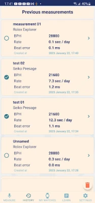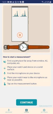 Features: Detect BPH Measure Beat rate Measure Beat error Measure Amplitude Set Lift angle Display beat noises real time (unlock, impulse and lock sounds) Display accuracy and beat error over time Share measurement Save measurement Track watch position and power reserve Mange watches Measurement statistics by watch and position Measure magnetism